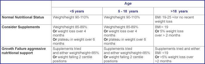 | Home > CF Guidelines > Bowel & Nutrition > Nutrition & Oral Supplementation |